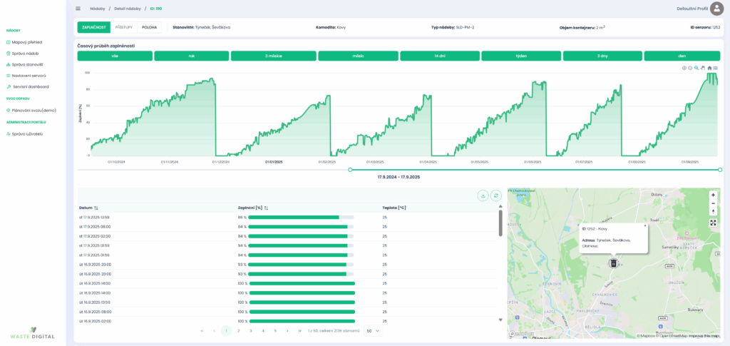 - Accurate data on container fill levels and waste production for individual containers, sites, and locations
